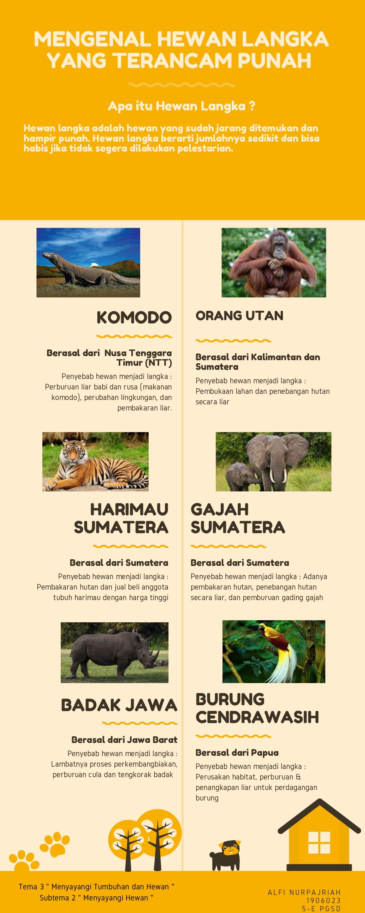 Tema 3 Subtema 2 mengenai Hewan Langka, daerah asal, dan penyebab punahnya hewan tersebut
