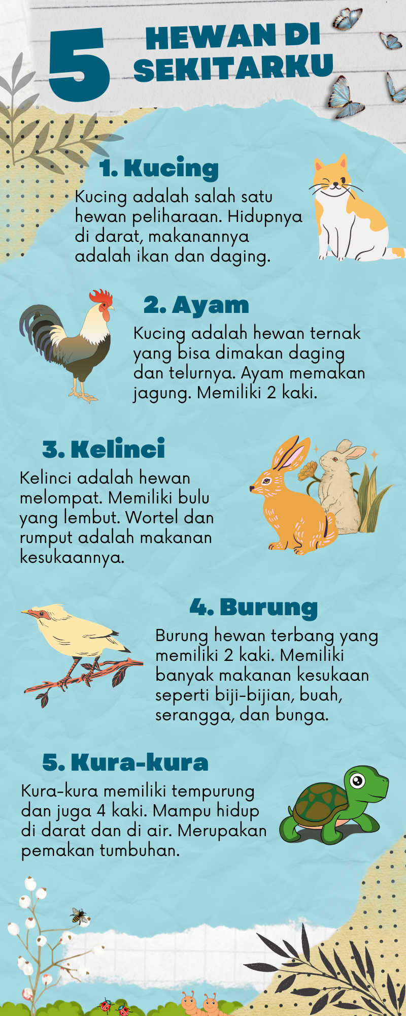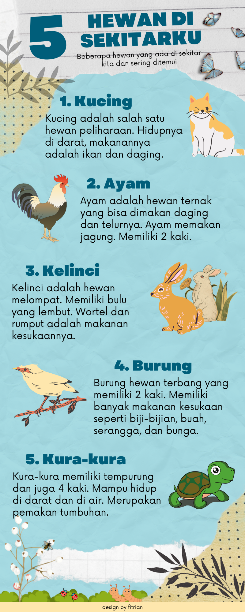 Infografis ini berisikan mengenai macam – macam hewan yang ada di sekitar kita beserta karakteristiknya