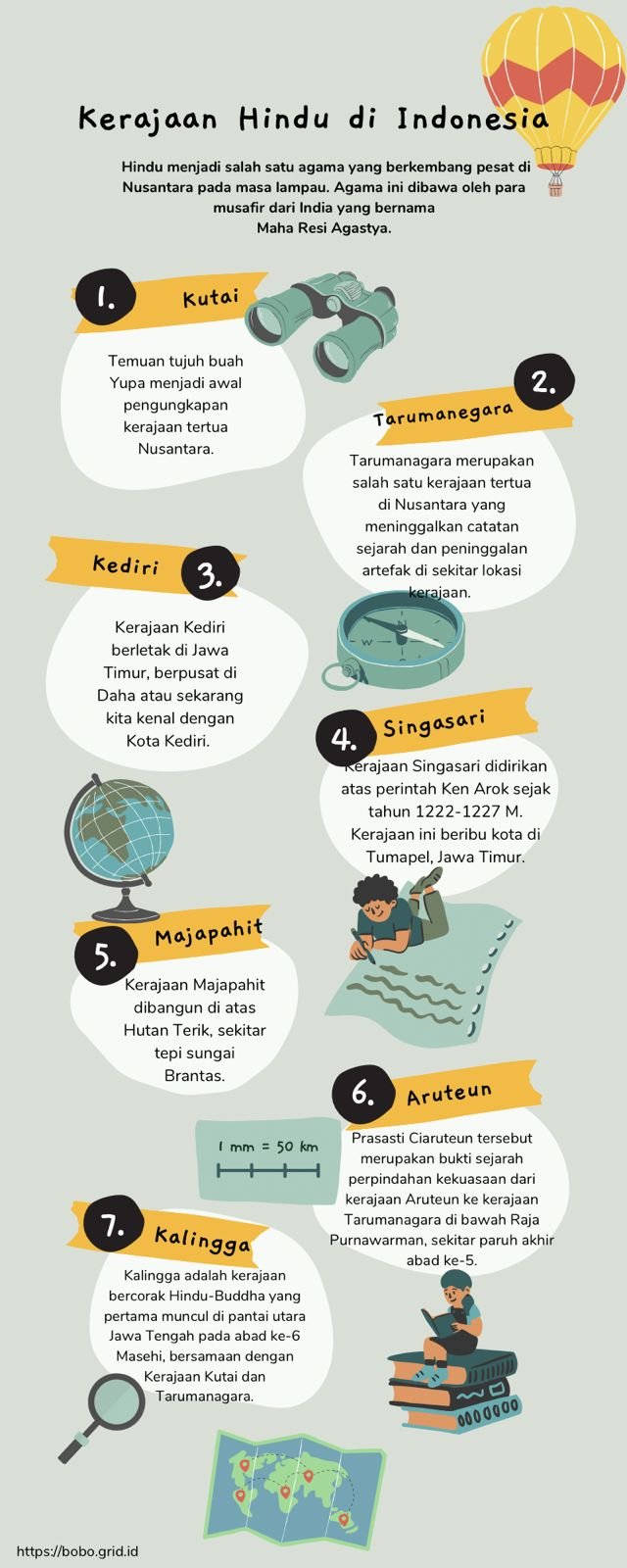 Kerajaan Hindu di Indonesia terdapat 7 kerajaan yaitu kerajaan Kutai, Tarumanegara, Kediri, Singasari, Majapahit, Aruteun, dan Kalingga.