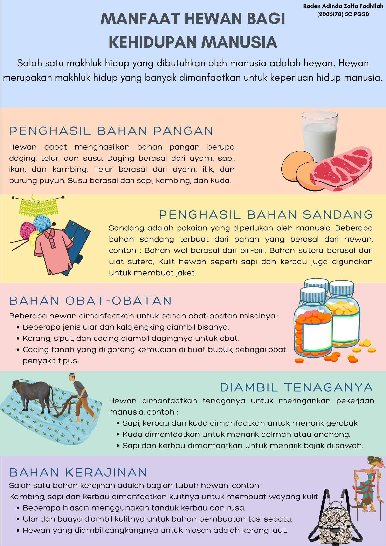 Infografis ini berisi tentang manfaat hewan bagi kehidupan manusia beserta contohnya
