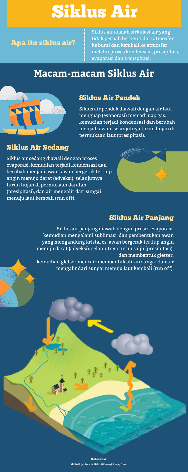 Materi ini berisi mengenai siklus air dengan sub meteri yaitu macam-macam siklus air