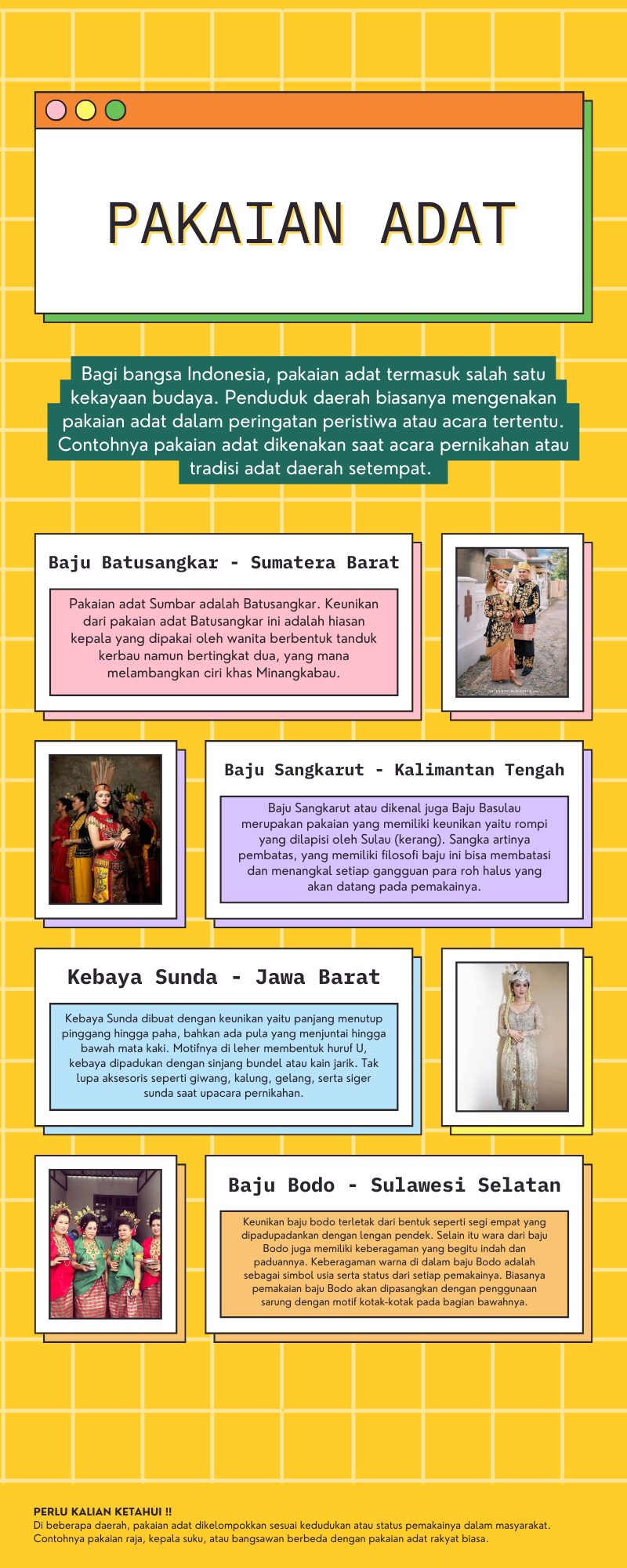Media ini dibuat untuk memudahkan siswa mengetahui keunikan dari pakaian adat yang ada di Indonesia.