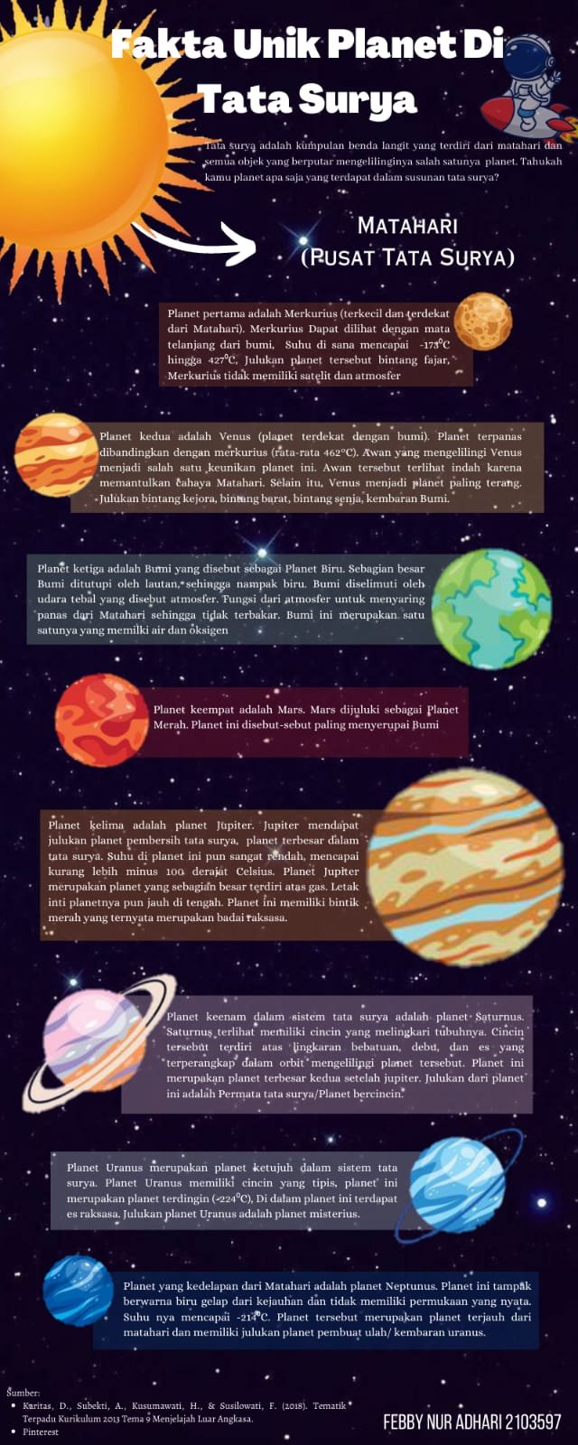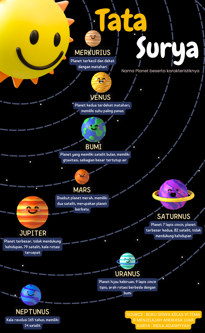 Infografis mengenai nama nama planet yang ada di tata surya beserta karateristiknya.