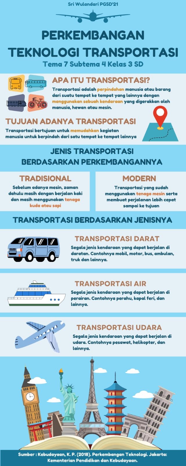 Infografis mengenai materi di kelas 3 perkembangan teknologi transportasi