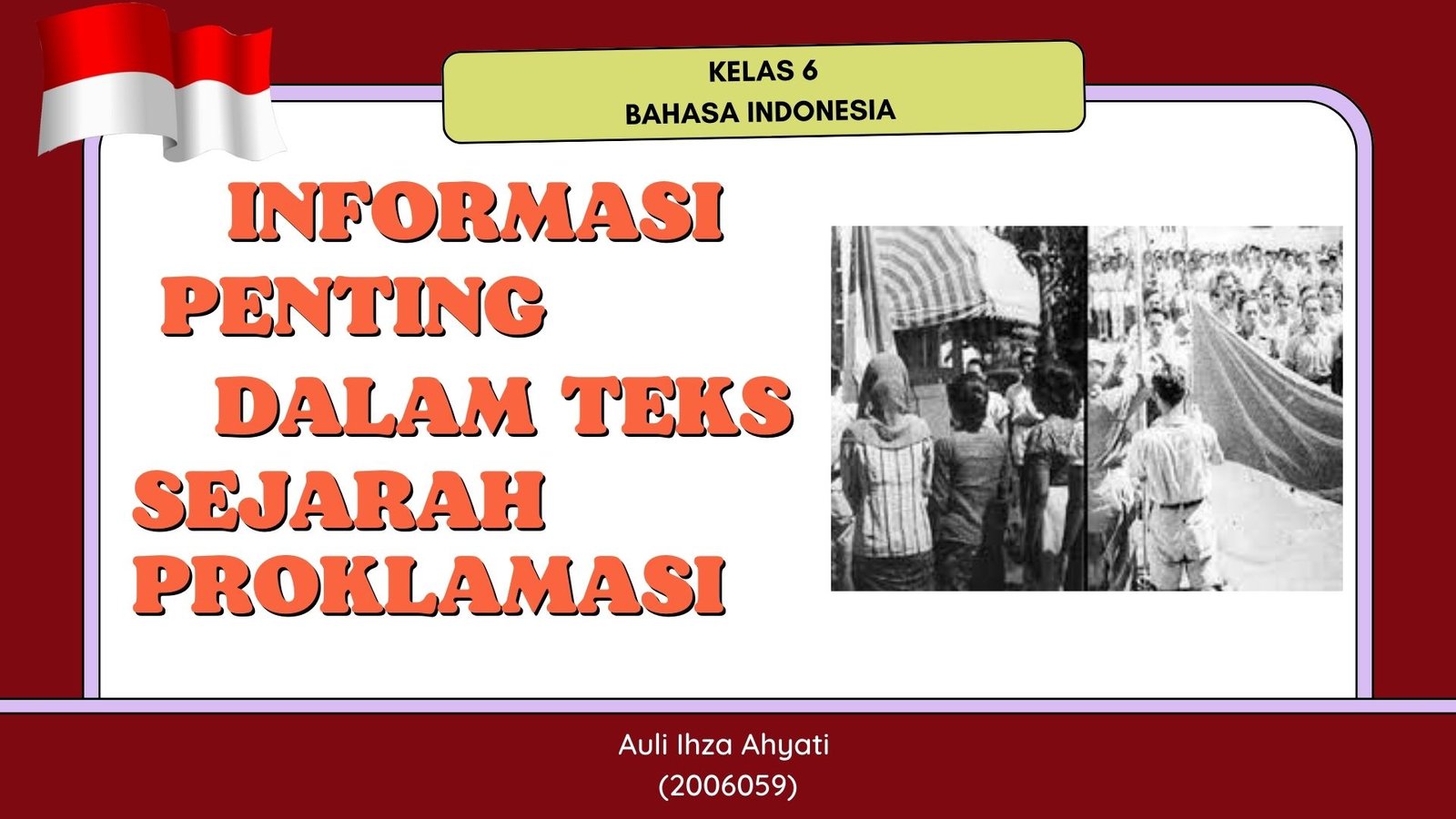 materi pembelajaran mengenai informasi penting dalam teks sejarah proklamasi menggunakan aspek apa, dimana, kapan, mengapa dan siapa