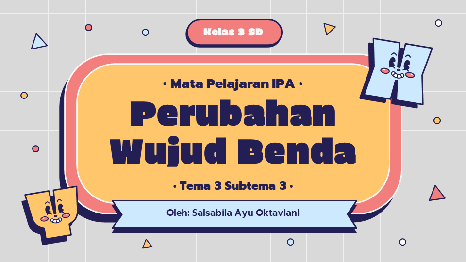 Nama: Salsabila Ayu Oktaviani NIM: 2000057 Kelas: 5C Dosen Pengampu: M. Ridwan Sutisna, M.Pd. Literasi ICT dan Media Pembelajaran di SD PPT Materi Kelas 3 SD Mata Pelajaran: IPA Materi: Perubahan Wujud Benda Sub materi: Mencair dan Membeku Buku Tema 3 Subtema 3 Pembelajaran 1 dan 2
