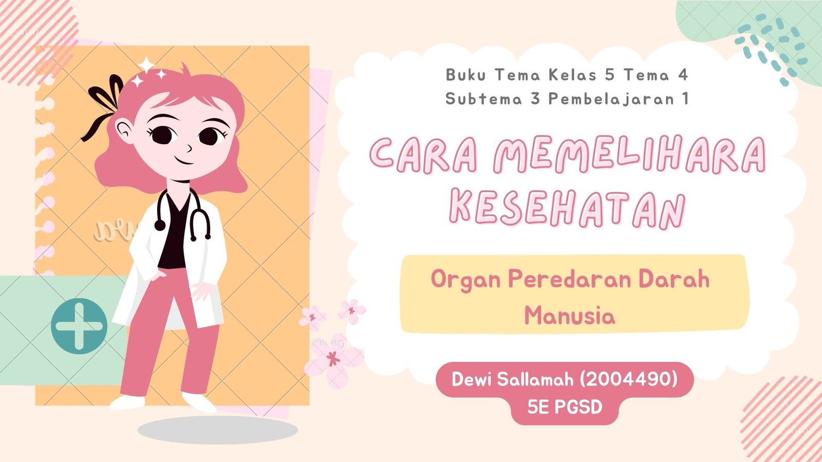 Media pembelajaran kelas 5 tentang Cara Memelihara Kesehatan Organ Peredaran Darah Manusia. Membahas mengenai peran penting organ sistem peredaran darah manusia, faktor penyebab serta penyakit yang berhubungan dengan organ sistem peredaran darah manusia, serta cara merawat organ sistem peredaran darah manusia.