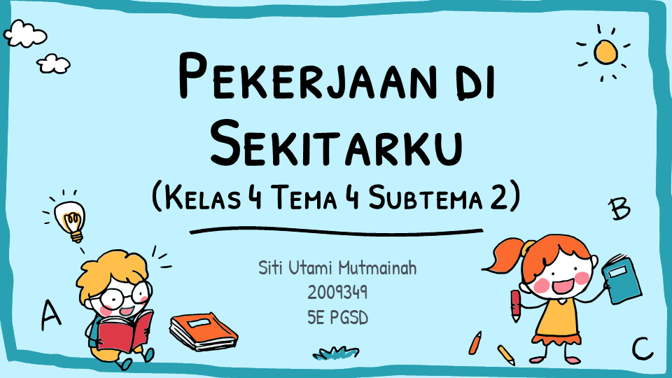 Power point 'Pekerjaan di Sekitarku' merupakan salah satu media pembelajaran yang dapat membantu guru dalam menjelaskan materi kepada siswa dan diharapkan siswa dapat memahami materi dengan cepat dan baik.