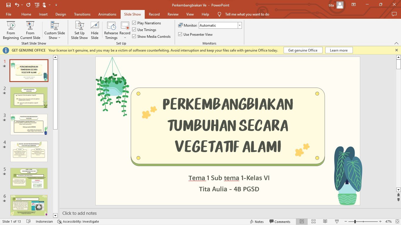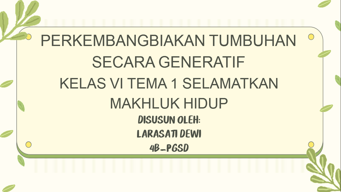 Power point pembelajaran perkembangbiakan Vegetatif alami pada tumbuhan untuk kelas 6 SD pada tema 1 selamatkan makhluk hidup.