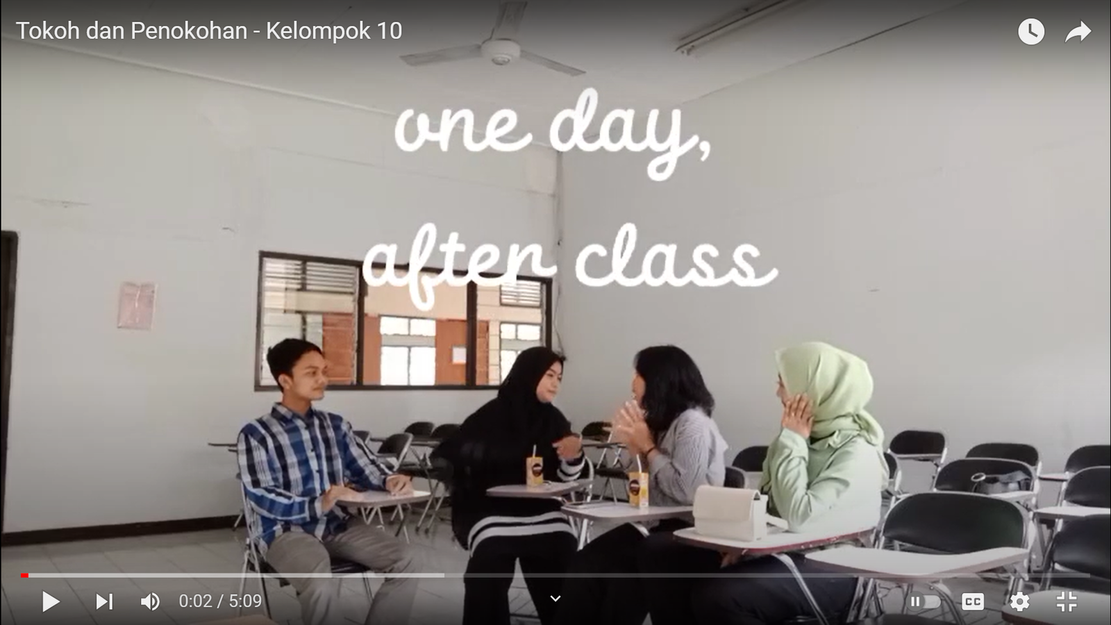 Video ini berisikan obrolan 4 orang yang membahas mengenai Tokoh dan Penokohan, seperti tokoh utama tokoh pembantu, Jenis tokoh berdasarkan wataknya: Protagonis, Antagonis dan Tritagonis.