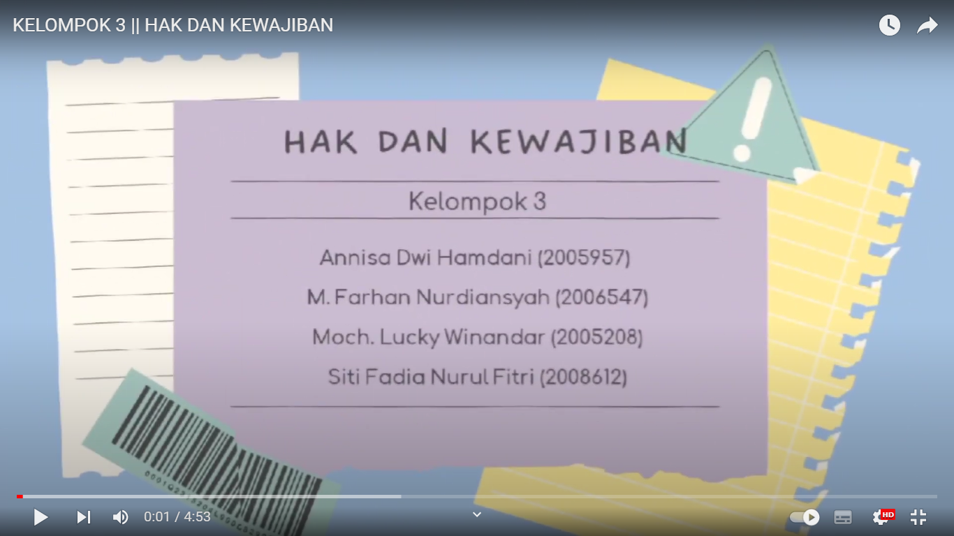 Kelompok 3 Annisa Dwi Hamdani (2005957) Moch. Lucky Winandar (2005208) Muhammad Farhan Nurdiansyah (2006547) Siti Fadia Nurul Fitri (2008612) Materi : Pelaksanaan Hak dan Kewajiban