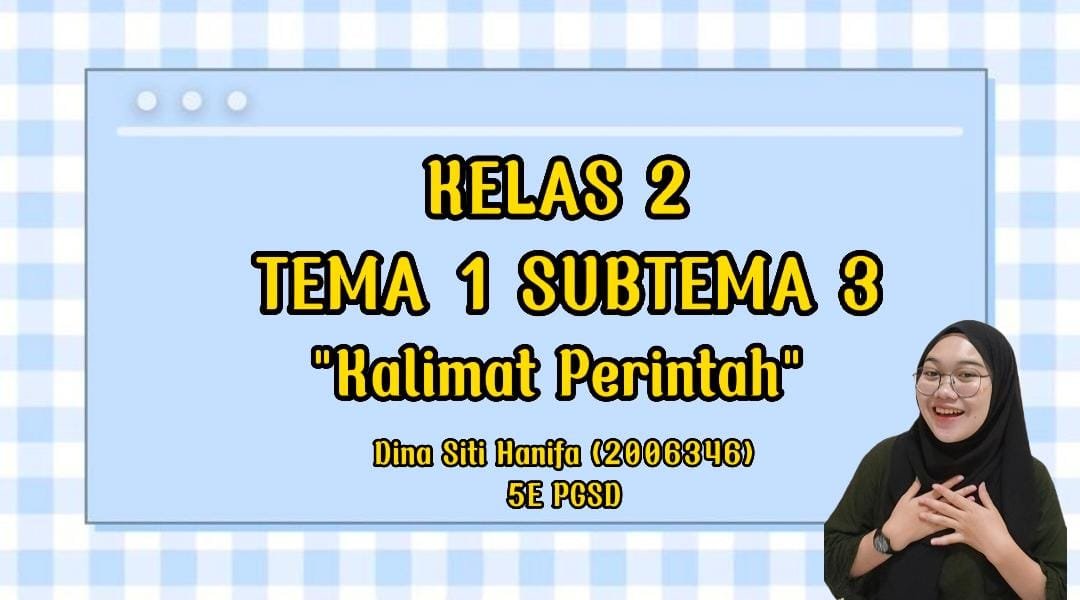 Video Pembelajaran Kelas 2 Tema 1 Subtema 3 mengenai "Kalimat Perintah" Dibuat oleh: Dina Siti Hanifa 2006346 5E PGSD