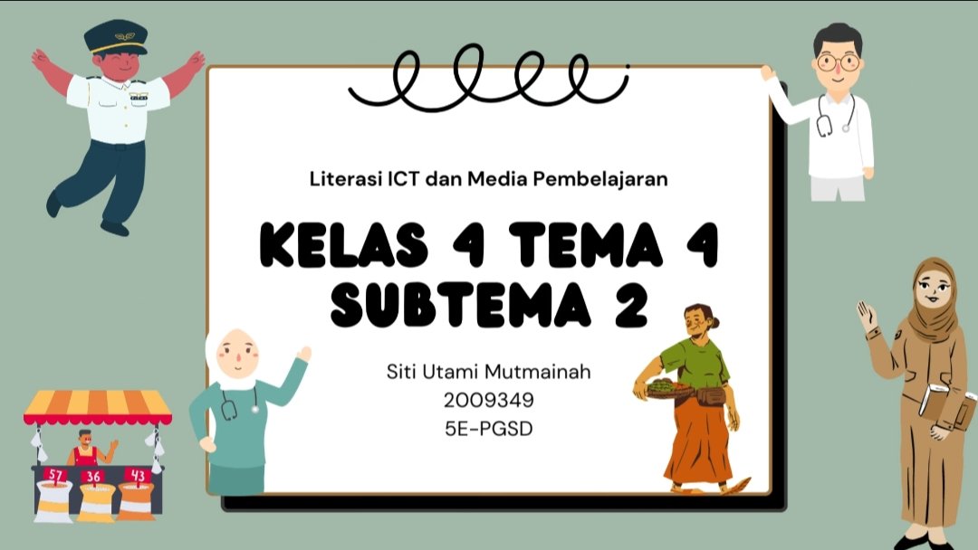 Nama: Siti Utami Mutmainah NIM: 2009349 Kelas: 5E PGSD Topik: Jenis pekerjaan berdasarkan hasilnya Ditujukan untuk memenuhi Ujian Akhir Semester Mata Kuliah Pembelajaran ICT dan Media Pembelajaran di SD Dosen pengampu: M. Ridwan Sutisna, S. Pd., M. Pd