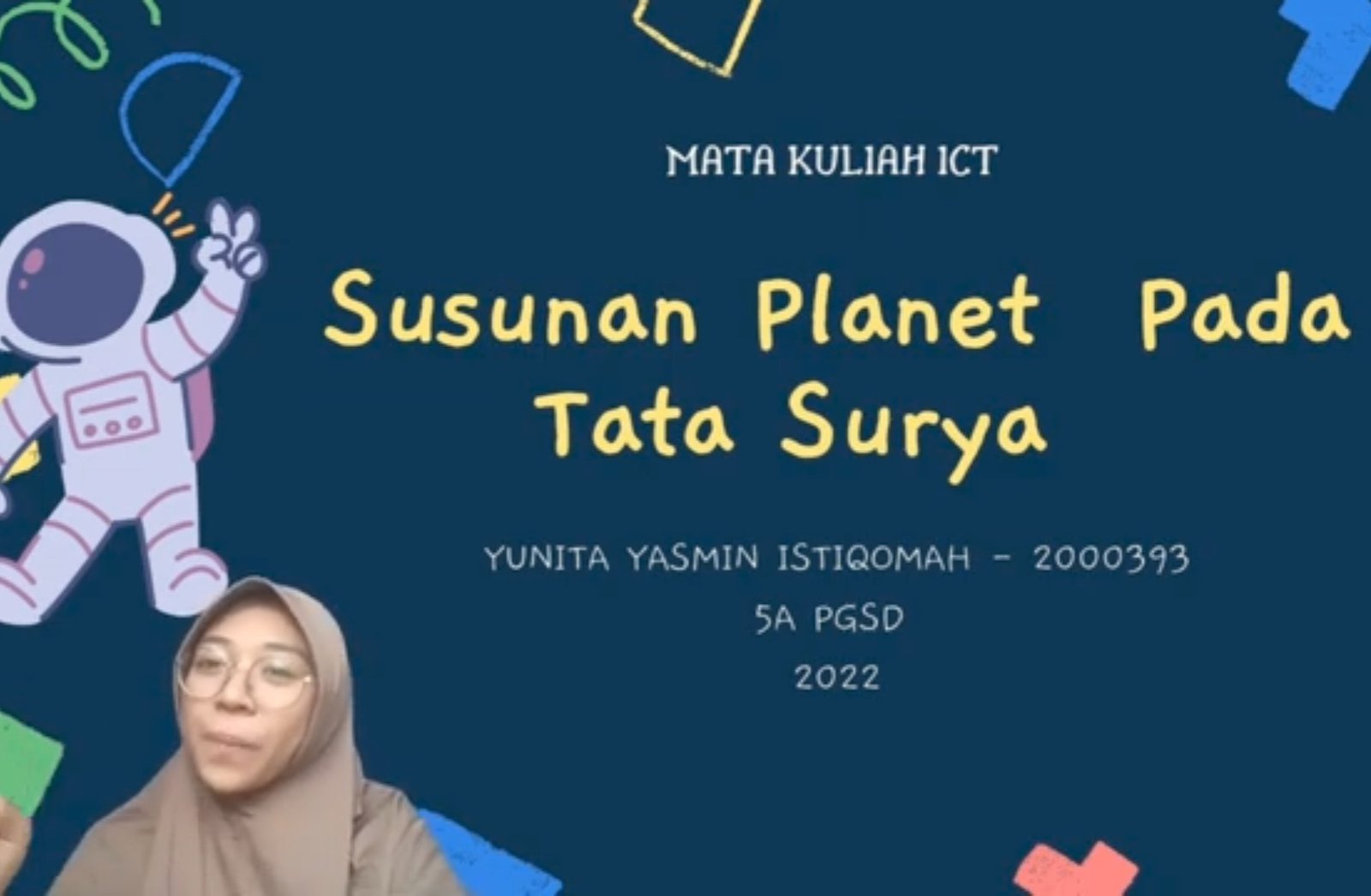 Pembicara Nama : Yunita Yasmin Istiqomah NIM : 2000393 Kelas : 5A PGSD Tema yang di Bahas Tema 9 Menjelajah Angkasa Luar Subtema 1 Susunan Planet pada Tata Surya