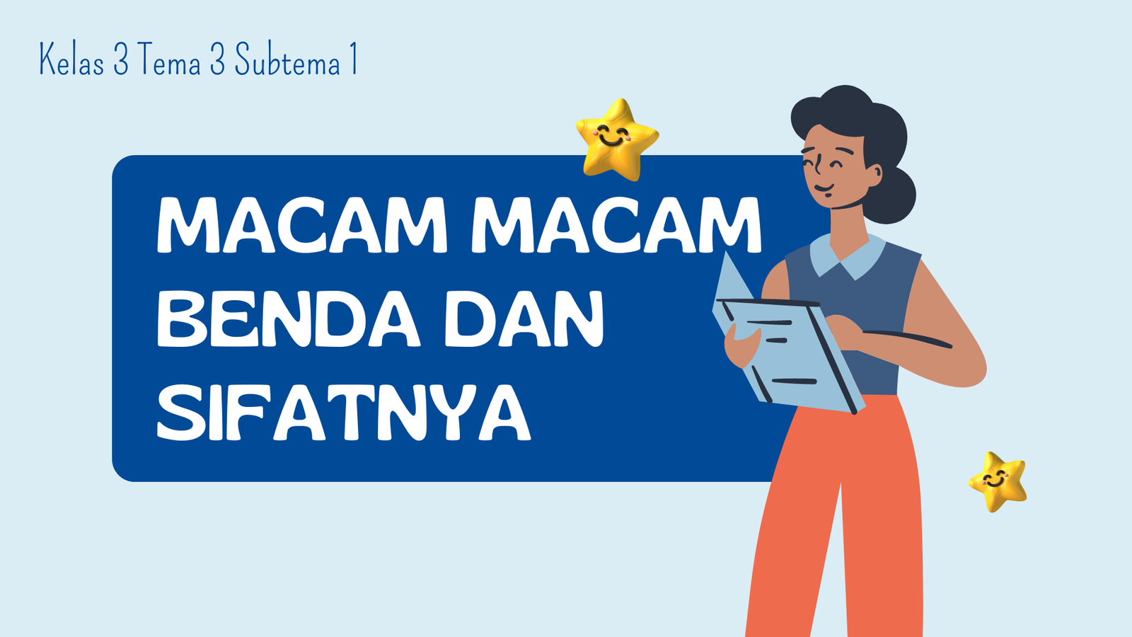 Video ini merupakan materi pembelajaran kelas 3 tema 3 subtema 1 dengan kajian aneka benda sekitarku. Video ini ditujukkan untuk kelas 3 sekolah dasar yang didalamnya memuat macam-macam benda, contoh benda beserta dengan sifat-sifat nya. Semoga video ini bermanfaat.