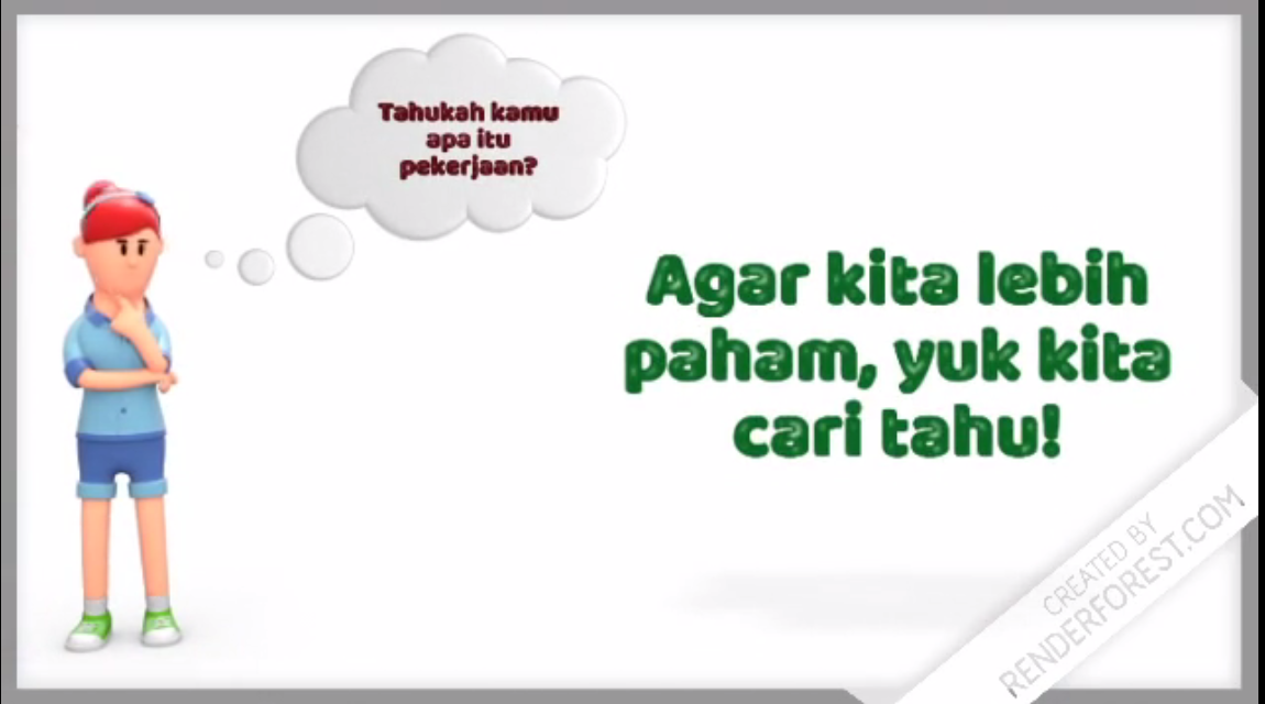 Video motion graphic untuk pembahasan materi jenis jenis pekerjaan dengan salah satu tujuan siswa dapat mengomunikasikan jenis pekerjaan yang diinginkan dengan jelas.Video Kelompok 3 Kelas 5B PGSD UPI Kampus Cibiru 2021. Dosen : M.Ridwan Sutisna, S.Pd.,M.Pd Anggota : Panni Resnawati, Sabila Zakyiana R, Wanda Alifah H