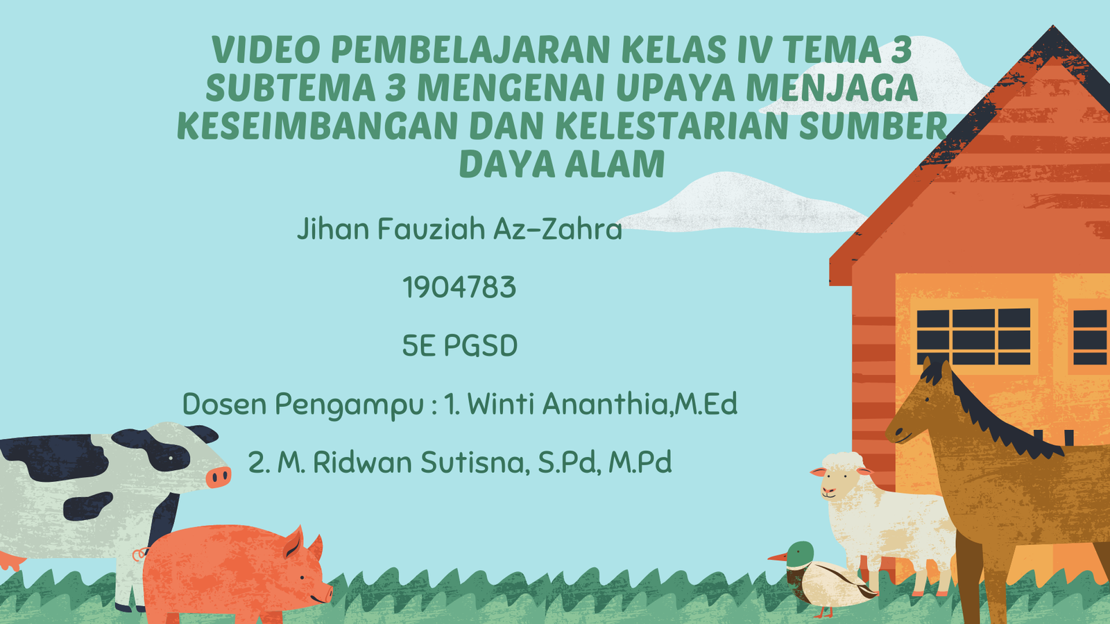 Media pembelajaran berbentuk video pembelajaran ini ditujukan untuk siswa kelas 1 sekolah dasar mengenai apa saja bencana alam yang ada di Indonesia dan bagaimana upaya pencegahannya. Di dalamnya dijelaskan mulai dari pengertian bencana alam, contoh bencana alam, dan upaya pencegahan bencana alam. Dengan memperlihatkan penjelasan bencana alam melalui video animasi diharapkan siswa tidak mudah bosan dalam mengamatinya dapat lebih mudah memahaminya.