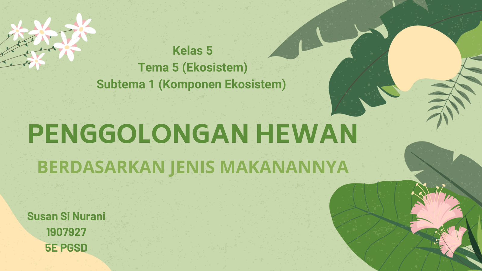 Media video ini akan membahas tentang penggolongan hewan berdasarkan jenis makanannya Susan Sri Nurani (1907927)