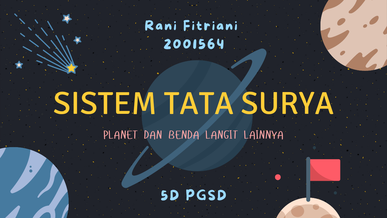 Sistem Tata Surya adalah susunan benda-benda langit yang terdiri atas matahari dan semua benda langit yang berputar mengelilingi matahari sebagai pusatnya Kelas VI Tema 9. Menjelajah Luar Angkasa Subtema 1. Keteraturan yang menakjubkan Pembelajaran 1 Oleh Rani Fitriani 2001564 5D PGSD